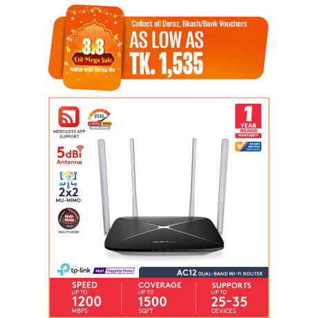 একাধিক মোডের সাথে mercusys ac12 ac1200 ডুয়াল ব্যান্ড ওয়্যারলেস রাউটার