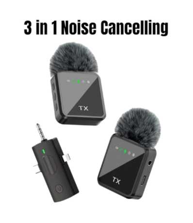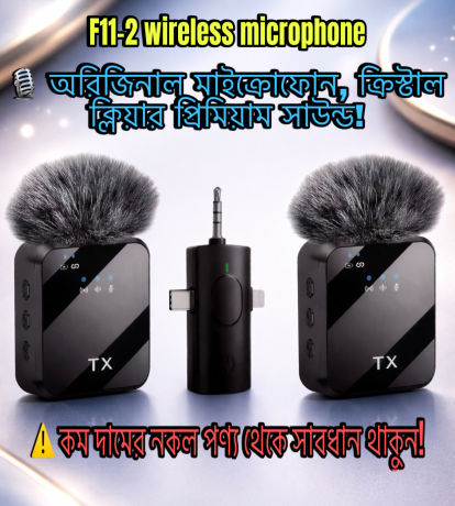 F11-2 (3 in 1) Collar Wireless Dual Microphone pro Professional Lapel Lavalier microphone iPhone/Android & Type C Supported 100& Noise Cancellation