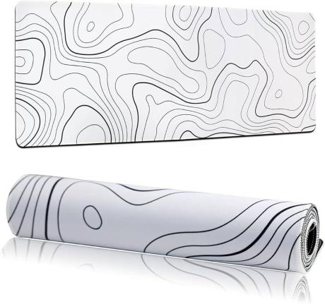 গেমিং হোম অফিসের কাজের জন্য নন-স্লিপ বেস এবং স্টিচড এজ সহ বড় গেমিং মাউস প্যাড টপোগ্রাফিক এক্সটেন্ডেড xl কালো এবং সাদা মাউসপ্যাড 35 ইঞ্চি x 16 ইঞ্চি বিগ ডেস্ক মাদুর