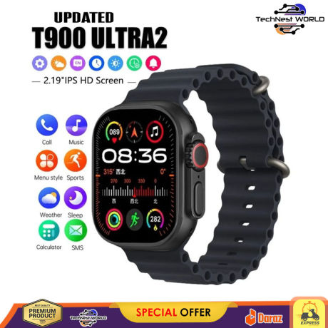 T900 আল্ট্রা 2 ফুল টাচ স্ক্রিন স্মার্ট ওয়াচ-ব্লুটুথ কল এবং স্মার্ট বৈশিষ্ট্য হার্ট রেট মনিটর বড় ডিসপ্লে আপগ্রেড সংস্করণ