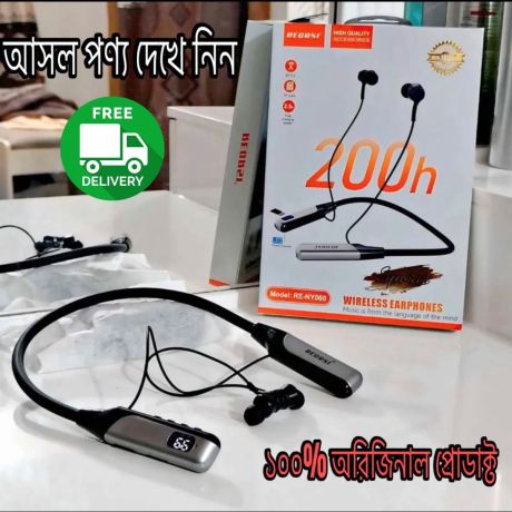 Regrsi ওয়্যারলেস নেকব্যান্ড ব্লুটুথ ইয়ারফোন RE-NY060 চার্জিং becup 200 ঘন্টা (সেরা মূল্য) আসল