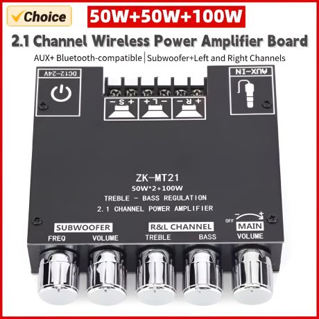 ZK-MT21 অ্যামপ্লিফায়ার ডিজিটাল পাওয়ার অ্যামপ্লিফায়ার বোর্ড 2x50W+100W 2.1 চ্যানেল সাবউফার AUX 12V 24V অডিও স্টেরিও ZK MT21 ব্লুটুথ 5.0 বাস অ্যামপ্লিফায়ার