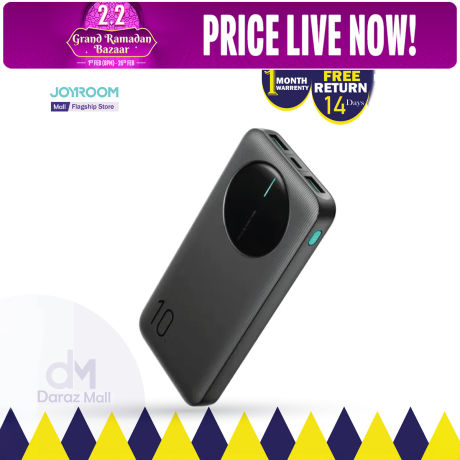 JOYROOM JR-PBF12 10000mAh Power Bank with LED Monitor, 2.4A Fast Charging – Portable Black Battery Pack