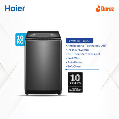 Haier 10 kg টপ লোডিং ওয়াশিং মেশিন/এয়ার ড্রাই/ফ্রেশ এয়ার সিস্টেম/কাছাকাছি জিরো পানির চাপ/nzp (HWM100-316S6)