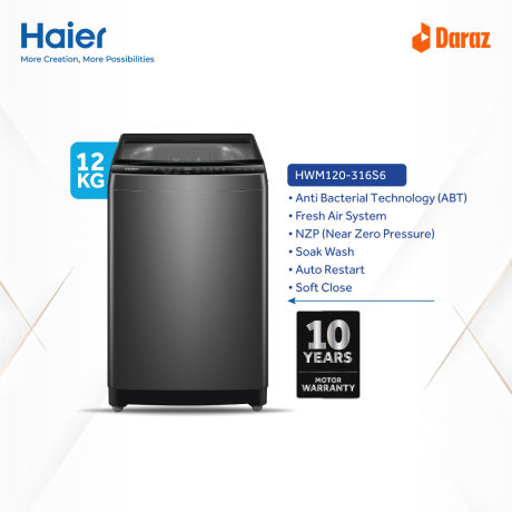 Haier 12 kg টপ লোডিং ওয়াশিং মেশিন/এয়ার ড্রাই/ফ্রেশ এয়ার সিস্টেম/কাছাকাছি জিরো পানির চাপ/nzp (HWM120-316S6)