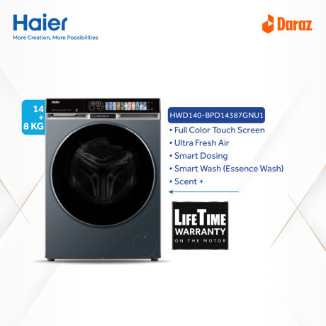 Haier 14kg [14 + 8] অল ইন-ওয়ান ওয়াশার ড্রায়ার ফ্রন্ট লোডিং ওয়াশিং মেশিন (HWD140-BPD14387GNU1) ফ্রি ডেলিভারি এবং ইনস্টলেশন