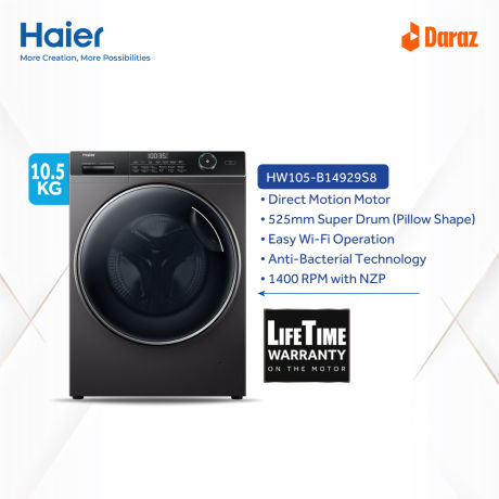 Haier 10.5 ফ্রন্ট লোডিং ওয়াশিং মেশিন/kg ড্রাম/স্টিম ওয়াশ/dd মোটর/wifi (525)