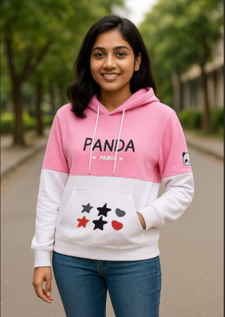পিঙ্ক হোয়াইট মিশ্র রঙের পান্ডা প্রিন্টেড (পান্ডা) হুডি 320 জিএসএম ফুল কটন ফ্যাব্রিকস মহিলাদের জন্য উপযুক্ত হুডি টাজকিয়া ফ্যাশন
