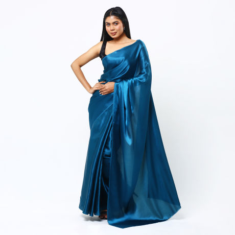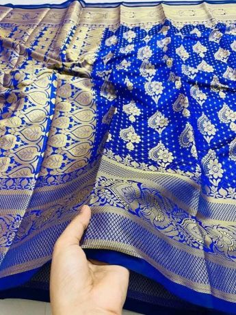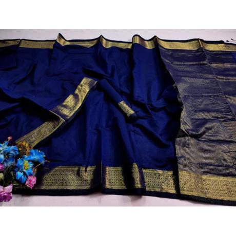 Semi katan cotton deep blue color 12 hand saree for women (Without Blouse Piece) - Perfect For All Seasons
