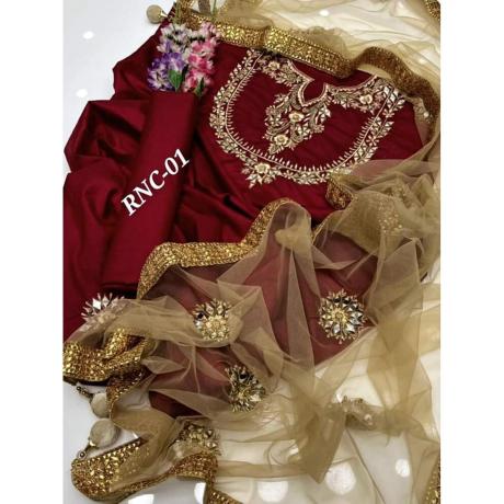 মহিলাদের জন্য কুসিয়ানা জর্জেট অ্যামব্রয়ডারি কাজ করা সালোয়ার কামিজ
