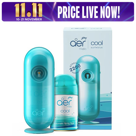 গডরেজ এয়ার ম্যাটিক কিট - ফ্লেক্সি কন্ট্রোল সহ স্বয়ংক্রিয় এয়ার ফ্রেশনার স্প্রে | কুল সার্ফ ব্লু (210 মিলি)