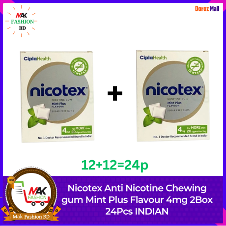 Nicotex Anti Nicotine Chewing gum Mint Plus Flavour 4mg 2Box 24Pcs INDIAN