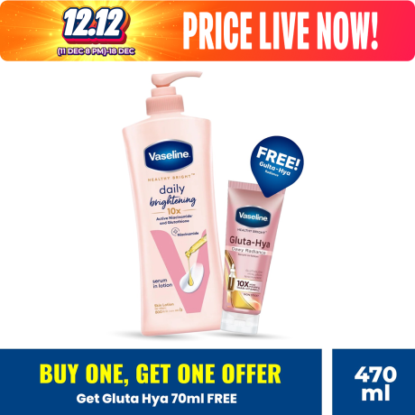 Vaseline Lotion Healthy Bright 400ml With Gluta-Hya Dewy Radiance Serum 70ml Free