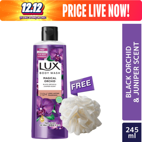 Lux Body Wash Black Orchid Scent & Juniper Oil 245ml (Free Loofah)