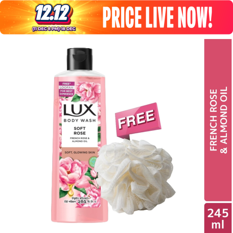 Lux Body Wash French Rose & Almond 245ml (Free Loofah)