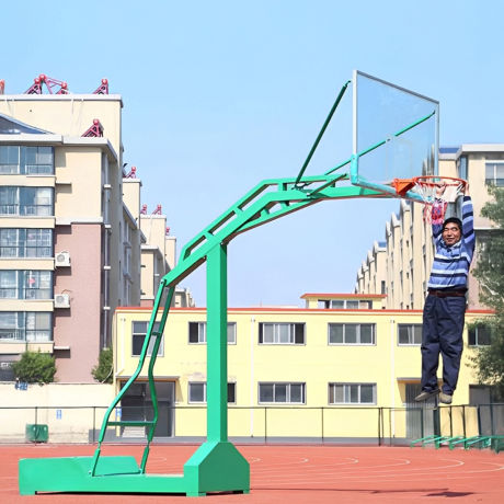 ফাইবার টেম্পার গ্লাস বোর্ড এবং পাইপ জন্য রিং উপাদান স্টিলের সাথে চলমান পেশাদার বাস্কেটবল সবুজ রঙের স্ট্যান্ড ব্যাকবোর্ডের জন্য শক্ত গ্লাস