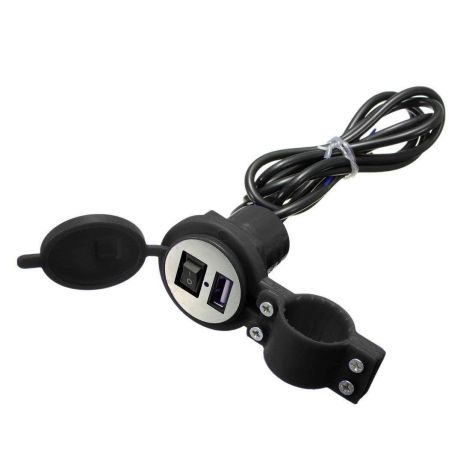 মোটরসাইকেলের জন্য অন-অফ সুইচ সহ usb চার্জার। কালো