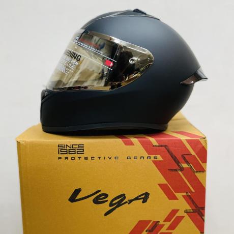 দ্বৈত সার্টিফিকেশন সহ ম্যাট ব্ল্যাক ফুল ফেস হেলমেট।