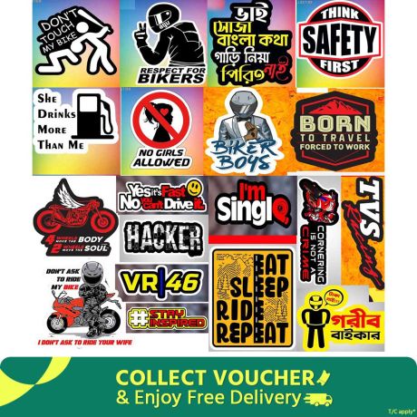 19 পিস ওয়াটারপ্রুফ ভিনাইল স্টিকার বাইক স্টিকার কম্বো সাইজ 3 ইঞ্চি