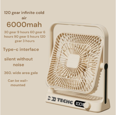 Techg m10 পোর্টেবল ডেস্কটপ ac/dc ফ্যান মাল্টিফাংশনাল ফোল্ডিং টাইপ-c রিচার্জেবল ফ্যান সাথে ডিজিটাল ডিসপ্লে 6000mah ব্যাটারি