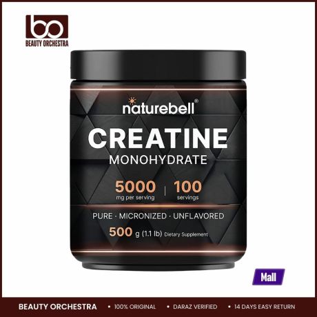 NatureBell Creatine Monohydrate Powder 500 Grams 5000mg Per Serving Unflavored Micronized Creatine Powder - Pre Workout | Keto | Vegan | Dissolves Easy | Filler Free - 100 Servings (1.1Lb)