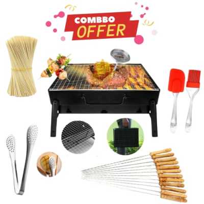 5-ইন-1 কম্বো অফার 13 ইঞ্চি bbq মেশিন + 12 পিস bbq স্টিক + 2 পিস সিলিকন তেল ব্রাশ + স্টিল ফুড ক্লিপ + বাঁশের শাশলিক স্টিক 8 ইঞ্চি 1 প্যাক