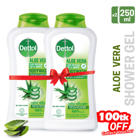 Buy 2 Get 100tk Off - Dettol Aloe Vera with Moisturizing Glycerin Bodywash Leaves Skin Feeling Soft & Smooth 250ml