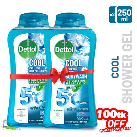Buy 2 Get 100tk Off - Dettol Cool upto 5°C Cooler Bodywash with 12Hour Long Lasting Odour Protection 250ml