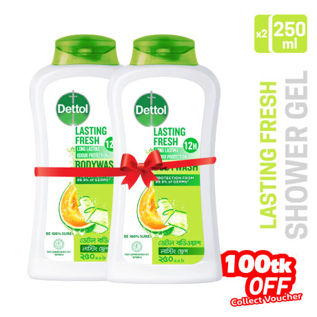 Buy 2 Get 100tk Off - Dettol Lasting Fresh Bodywash 250ml with 12 Hour Odour Protection