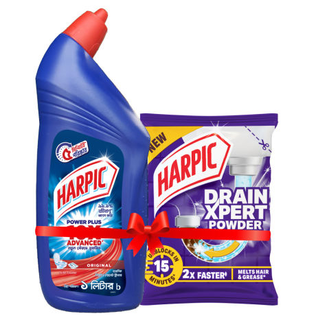 Harpic Toilet Cleaning Liquid Power Plus 10x Stronger 1Ltr + 45g Drain Cleaning Xpert Powder Combo Pack