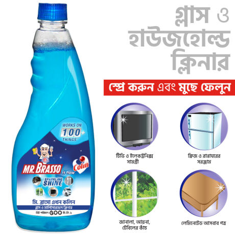 Mr. Brasso Glass & Household Cleaner Refill 500ml with Ultra Shine Formula for TV, Electronics, Fridge, Laminated Furniture, Mirror, Car Windshield - glass cleaner