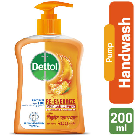 Dettol Handwash Re-Energize 200ml Pump, pH-Balanced Liquid Soap