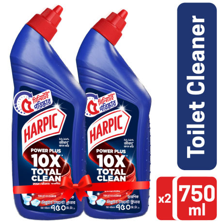 Harpic Toilet Cleaner 1.5L (750ml X 2), Double Pack Original Power Plus 10x Total Clean, new & thicker formula kills 99.99% of germs