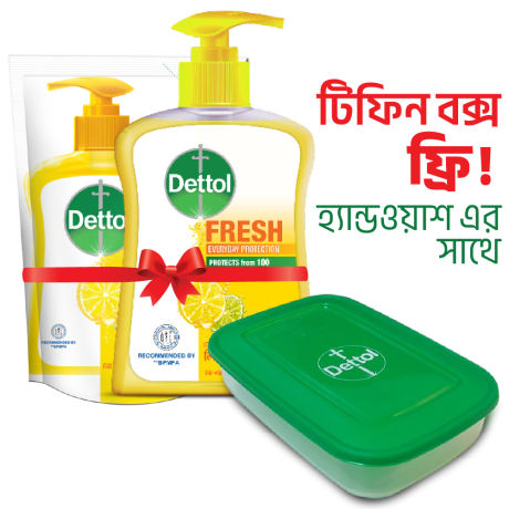 ( Free Tiffin Box ) Dettol Handwash Fresh 200 ml Pump & 170 ml Refill Combo