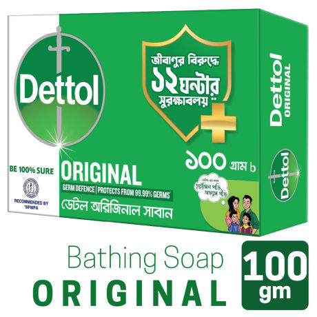 Dettol Soap Original 100gm Germ Defence Bathing Bar, Soap with protection from 99.99% illness-causing germs